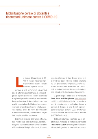 a vicenda della pandemia da CO- gimento dell’Ateneo è stato davvero ampio e si