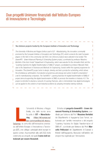 fa parte di EIT – Manufactu- dinato per Unimore dal Prof. Massimo Bertolini