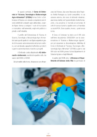 Agro-Alimentari” (STEBA) forma Dottori e Dot- aziende esterne, otto sono di dottorati industriali,