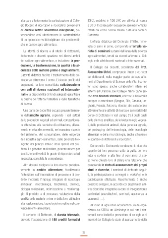 dottorande e docenti spaziano nei diversi ambiti agro-alimentari, tenuti da docenti afferenti al Col-