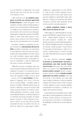 tro, dei metalli (di base e preziosi) e delle frazioni vamente macinato, si stanno testando possibili