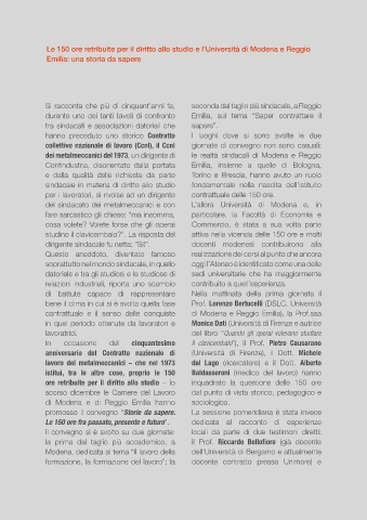 del sindacato dei metalmeccanici e con L’allora Università di Modena e, in