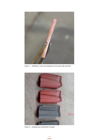 Figura 1 – elettrodo in rame con deposito di rame puro alla sommità. Figura 2 – prototipi semi-industriali di tegole. 20