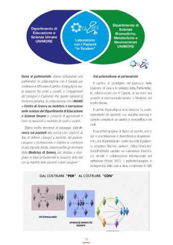 sostenere e diffondere il cambio di paradigma nel- relazione di cura e lo sviluppo della Partnership,