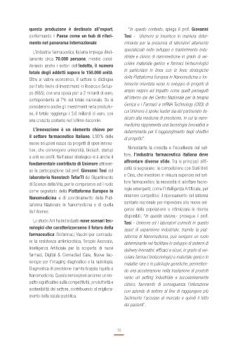 tamente circa 70.000 persone, mentre consi- striale e clinico di nanomedicine in grado di vei-
