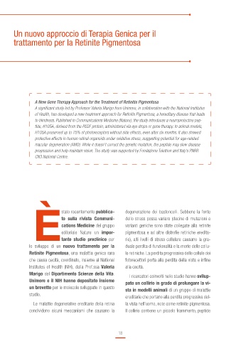 progression and help maintain vision. The study was supported by Fondazione Telethon and Italy’s PNRR