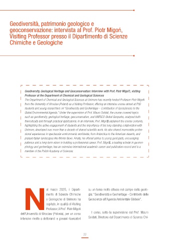 mento di Scienze Chimiche gia: “Geodiversità e Geoheritage - Contributo delle