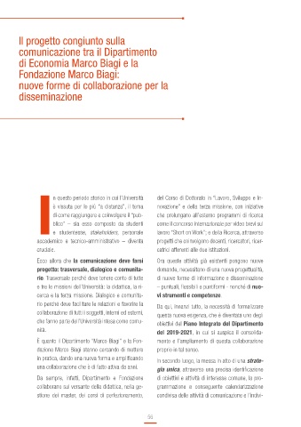 È quanto il Dipartimento “Marco Biagi” e la Fon- mento e l’ampliamento di questa collaborazione