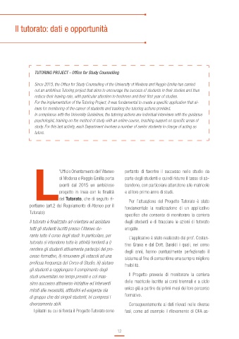 Since 2015, the Office for Study Counselling of the University of Modena and Reggio Emilia has carried
