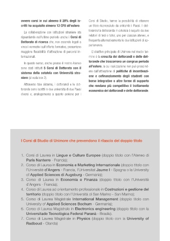 sono stati istituiti 5 Corsi di Dottorato con il all’estero, la cui realizzazione non può prescind-