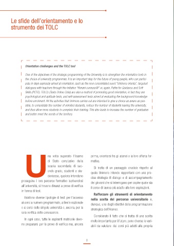 Skills (PCTO). TOLCs (Tests Online Cisia) are also a method of promoting good orientation, in fact they are