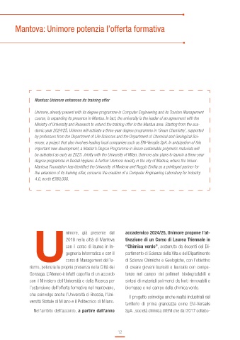 Ministry of University and Research to extend the training offer in the Mantua area. Starting from the aca-