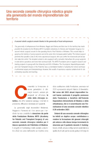 possible the donation by the Modena ARTS Foundation (Academy for Robotic and Transplant Surgery) of a