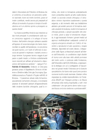 Fabrizio Di Benedetto, Ordinario di Chirurgina ta la strategia con cui ci prefiggiamo di riaccen-