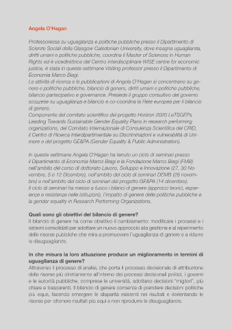 Le attività di ricerca e le pubblicazioni di Angela O’Hagan si concentrano su ge-