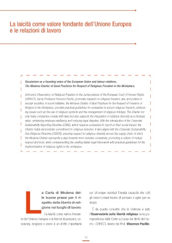 secular societies. A recent initiative, the Modena Charter of Best Practices for the Respect of Freedom of