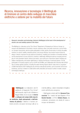 l MeltIngLab è un laboratorio del Di- mobilità elettrica, i sistemi industriali e il migliora-