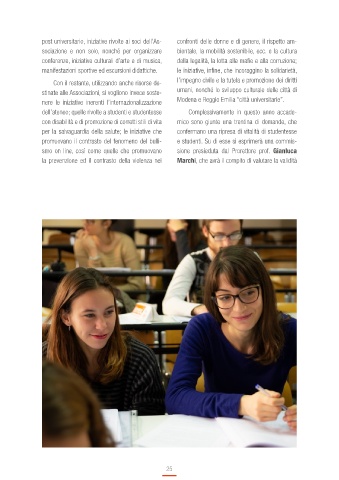 post universitario, iniziative rivolte ai soci dell’As- confronti delle donne e di genere, il rispetto am-