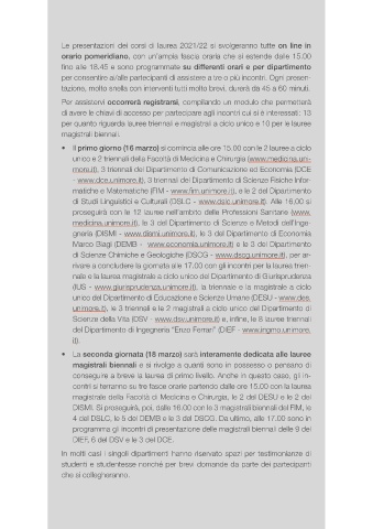 rivare a concludere la giornata alle 17.00 con gli incontri per la laurea trien-