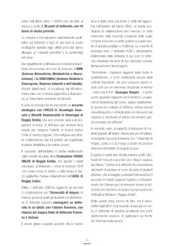 di collaborazione con l’Università di Angers, in dottorale a Modena o Reggio Emilia”.