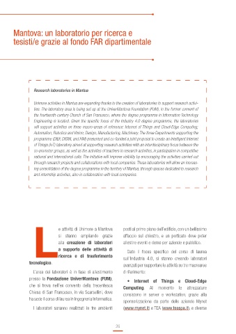 ties. The laboratory area is being set up at the UniverMantova Foundation (FUM), in the former convent of