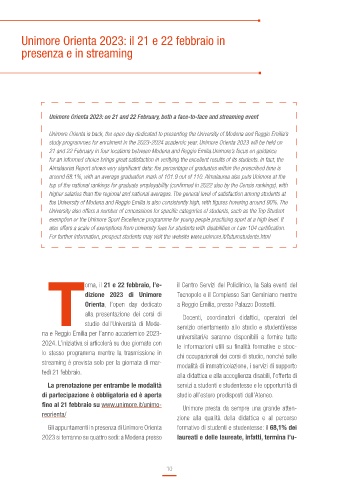 study programmes for enrolment in the 2023-2024 academic year. Unimore Orienta 2023 will be held on