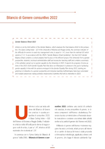 stands at 1.57. In accordance with the CRUI’s “Gender Balance Sheet Guidelines”, the final 2022 Gender