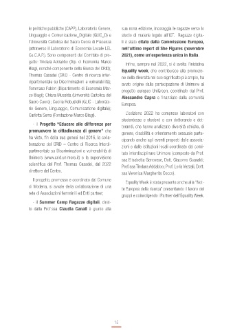 Biagi, nonché componente della Giunta del CRID); Equality week, che contribuisce alla promozio-