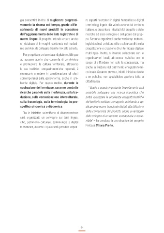 cibo, patrimonio culturale, terminologia e digital nibile” – ha concluso la coordinatrice del progetto