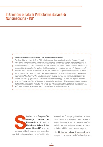 tegrare e condividere le competenze di università e La Piattaforma Italiana di Nanomedicina si