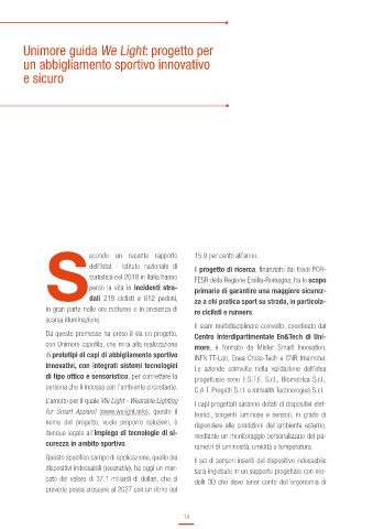 for Smart Apparel (www.welight.info), questo il tronici, sorgenti luminose e sensori, in grado di