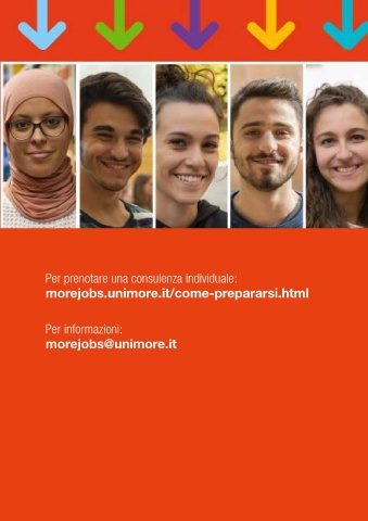 Per prenotare una consulenza individuale: morejobs.unimore.it/come-prepararsi.html Per informazioni: morejobs@unimore.it 33