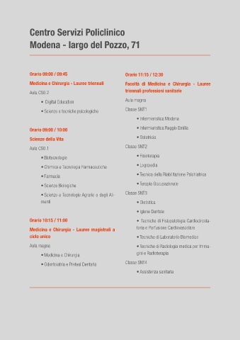 Orario 09:00 / 10:00 • Infermieristica Reggio Emilia