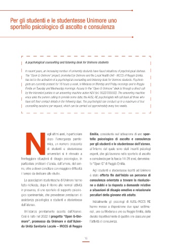 has led to the activation of a psychological counselling and listening desk for Unimore students. Psycholo-