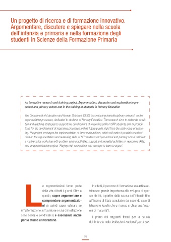 An innovative research and training project. Argumentation, discussion and explanation in pre-