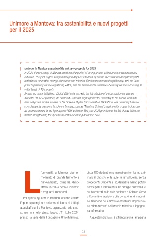 In 2024, the University of Mantua experienced a period of strong growth, with numerous successes and