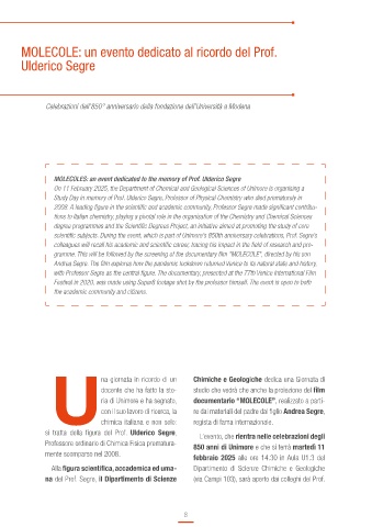 scientific subjects. During the event, which is part of Unimore’s 850th anniversary celebrations, Prof. Segre’s