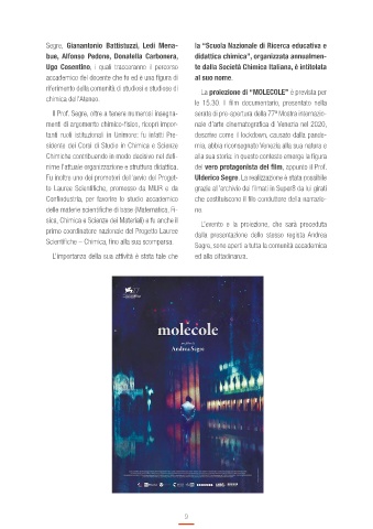 riferimento della comunità di studiosi e studiose di La proiezione di “MOLECOLE” è prevista per