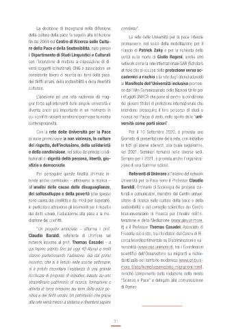 consistente lavoro di ricerca sui temi della pace, cademici a rischio e la rete degli atenei aderenti