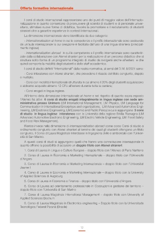 l’Ateneo ha attivi 6 corsi di studio erogati integralmente in lingua inglese con sede am-