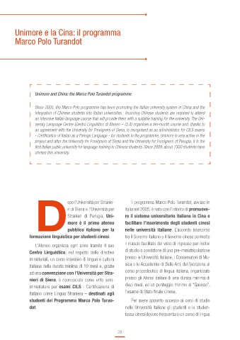 first Italian public university for language training to Chinese students. Since 2009, about 1300 students have