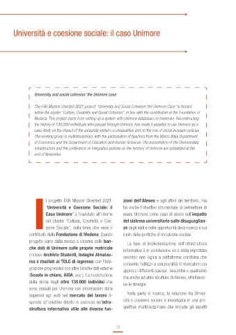 “Università e Coesione Sociale: il ha anche l’obiettivo strumentale di permettere di