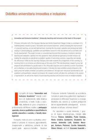 multidisciplinary research project, “Innovative and Inclusive Academia”, aimed at helping the improvement