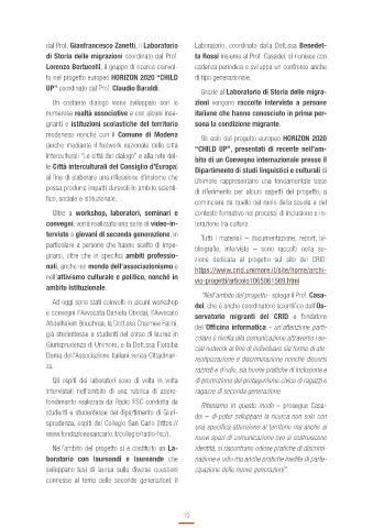 UP” coordinato dal Prof. Claudio Baraldi. Grazie al Laboratorio di Storia delle migra-