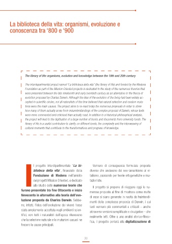 blioteca della vita”, finanziato dalla diverse che andavano dal neo-lamarkismo al vi-