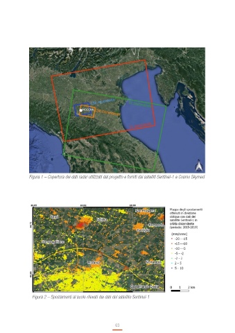 Figura 1 – Copertura dei dati radar utilizzati dal progetto e forniti dai satelliti Sentinel-1 e Cosmo Skymed Figura 2 – Spostamenti al suolo rilevati dai dati del satellite Sentinel-1 63
