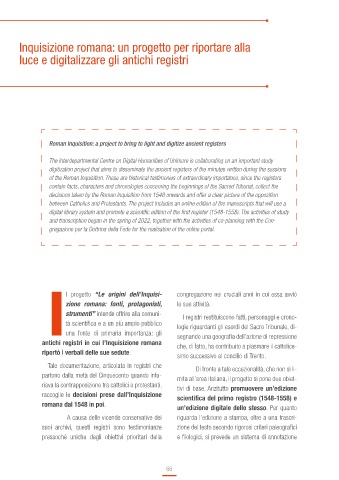 of the Roman Inquisition. These are historical testimonies of extraordinary importance, since the registers