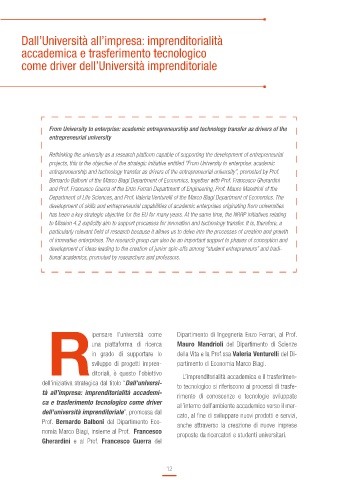 Rditoriali, è questo l’obiettivo L’imprenditorialità accademica e il trasferimen-