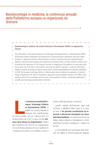 nel settore sanitario, che per l’edizione 2024 si è della Nanomedicina, con sessioni incentrate sul