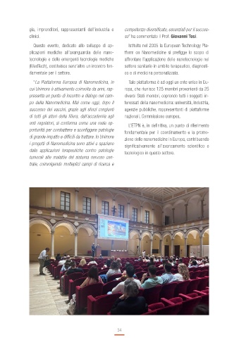 “La Piattaforma Europea di Nanomedicina, in Tale piattaforma è ad oggi un ente unico in Eu-